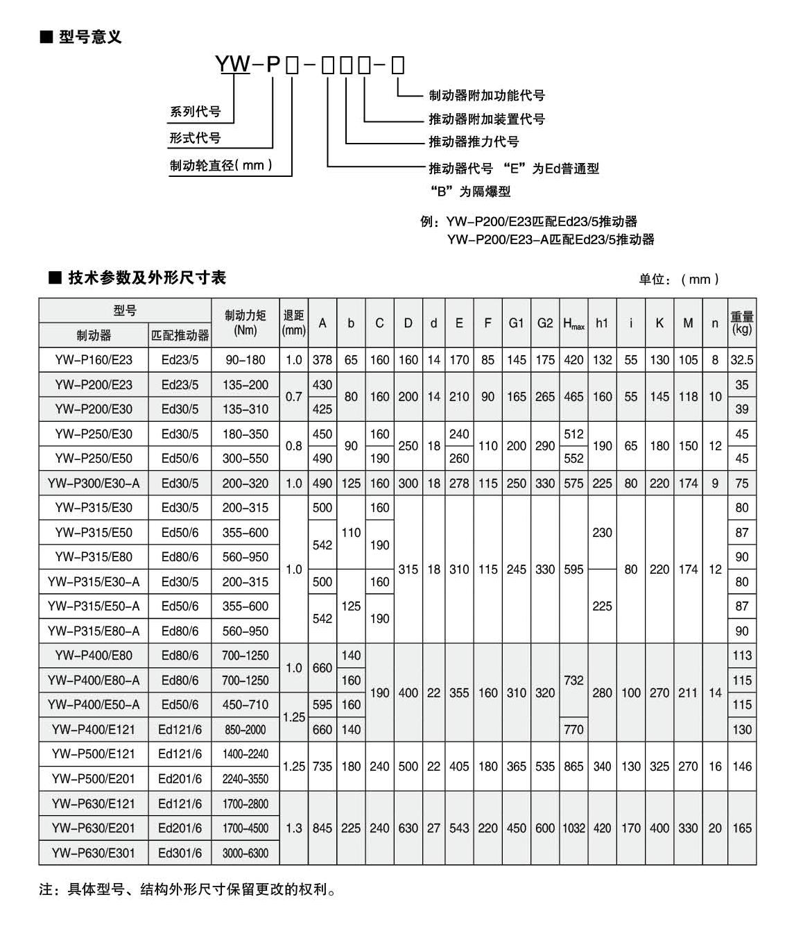 YWZ8.YWP系列電力液壓鼓式制動器的連接尺寸和制動力矩參數(shù)符合JB/ZQ4388-86和GB6333-86(帶A系列)標準,技術要求符合JB / T6406-2006標準,配套符合DIN15430標準的Ed系列推動器。