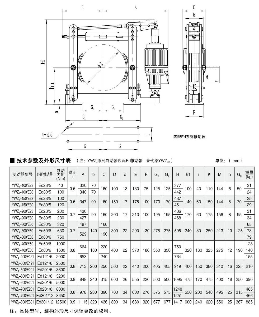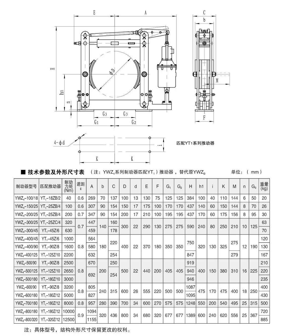 ● 產(chǎn)品型號:YWZ4-100、YWZ4-150、YWZ4-200、YWZ4-300、YWZ4-400、YWZ4-500、YWZ4-600、YWZ4-700、YWZ4-800